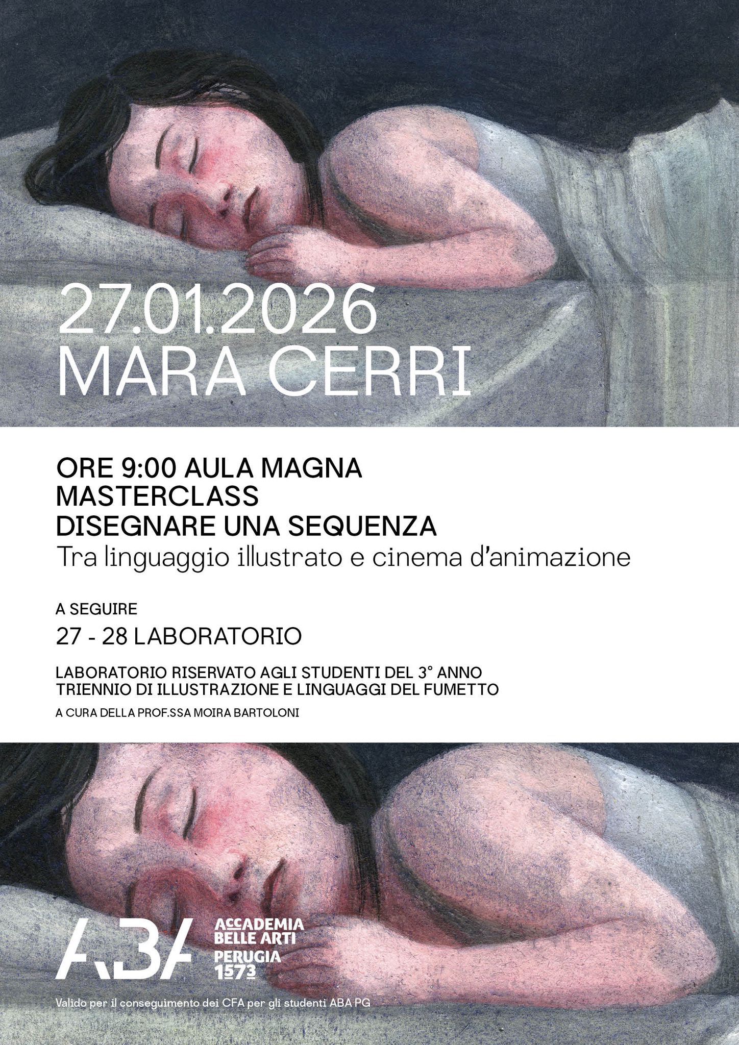 Masterclass con Mara Cerri, premio Andersen 2025 come migliore illustratrice e coautrice, con Magda Guidi, dei corti animati “Via Curiel 8”, premiato al Torino Film Festival 2011 e “Sogni al campo”, selezionato alla Biennale del Cinema di Venezia 2020 nella sezione Orizzonti.