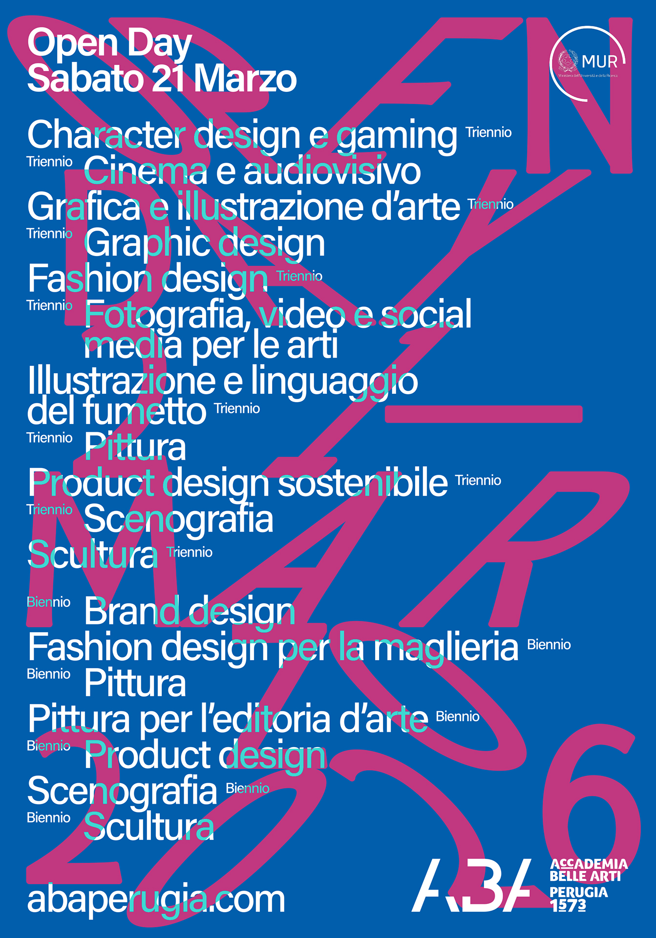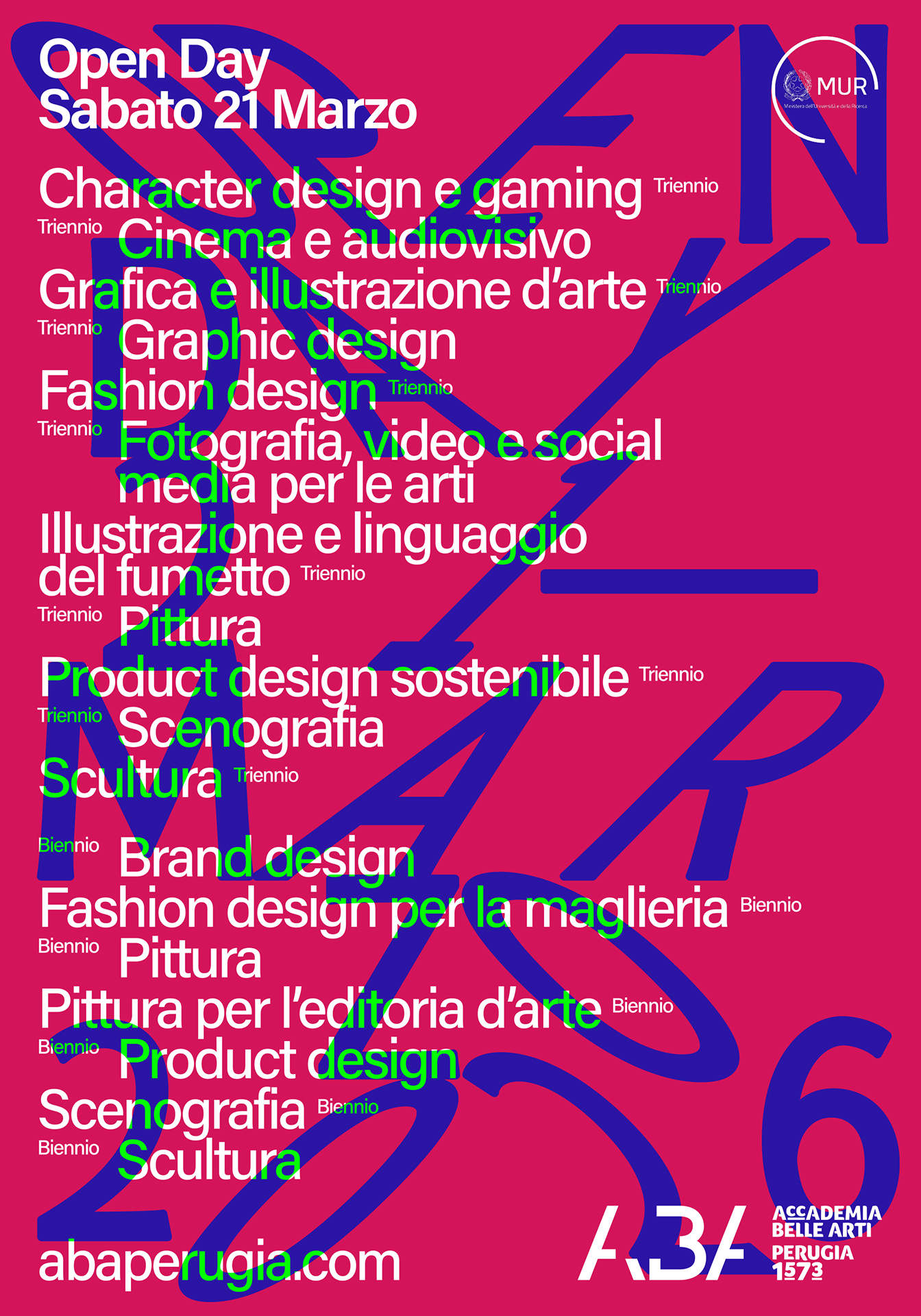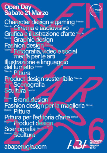 • Scenografia, Cinema e audiovisivo, Fotografia, video e social media per le arti, Character design e gaming